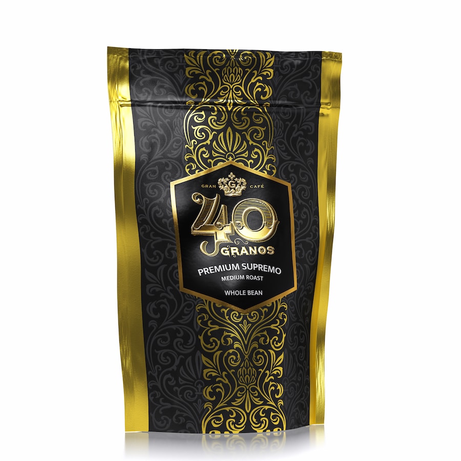 40 Granos is a luxury brand for freshly harvested and roasted coffee made of the finest hand-picked Colombian Supremo 18 whole beans, the highest-ranking beans in the Premium category. This brand is strictly for coffee connoisseurs.