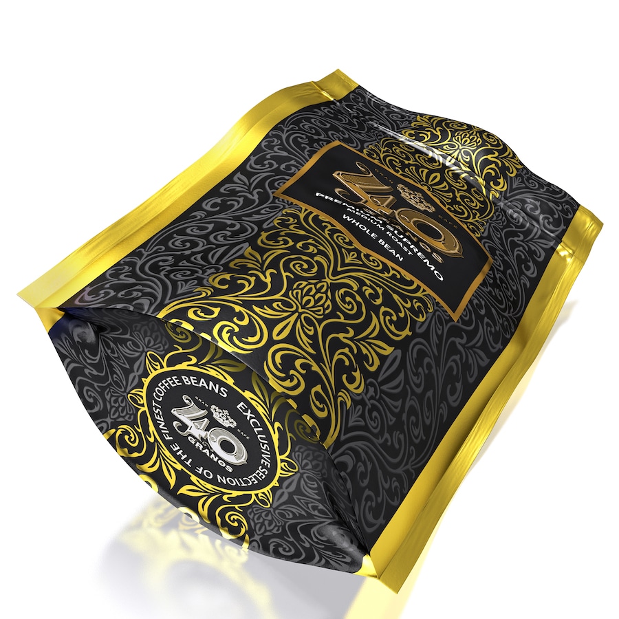 Our luxury coffee bag is unique, made in USA of top quality, giving our hand-picked coffee beans the perfect package to maintain freshness until the coffee beans are consumed.